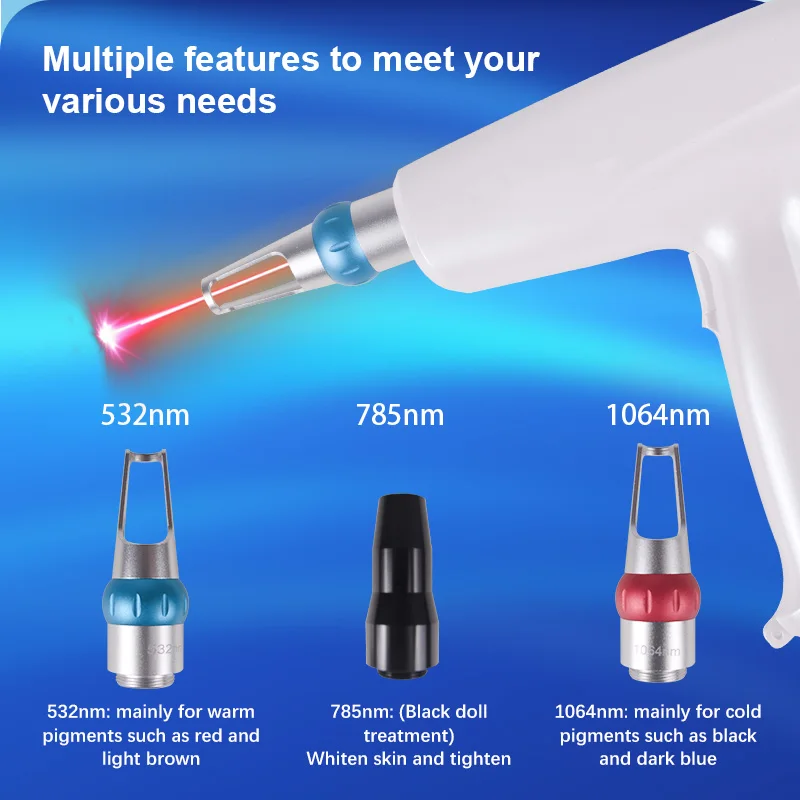 | Q: Is the picosecond modality suitable for all ink colors? | A: Yes, with interchangeable wavelengths (532nm, 1064nm, 1320nm), it effectively targets multi-colored tattoos and stubborn pigmentation like melasma and sunspots. |