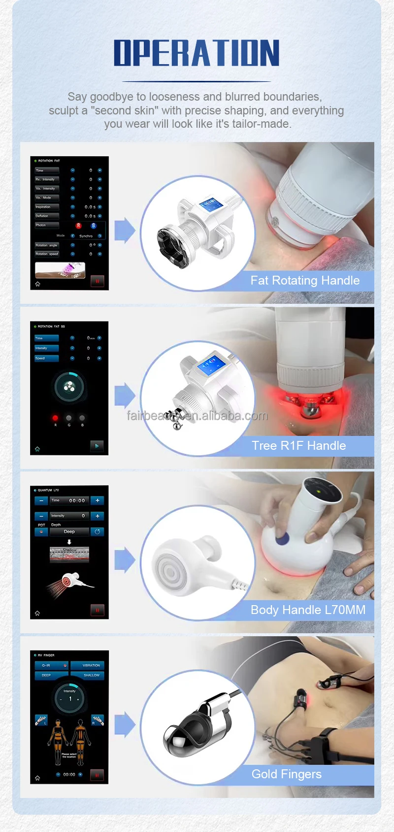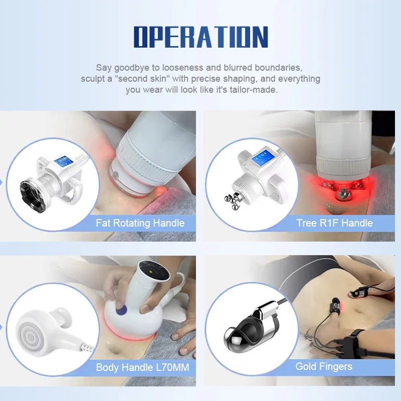 - Custom Handpieces: Configure specialized vacuum rollers and laser pads.