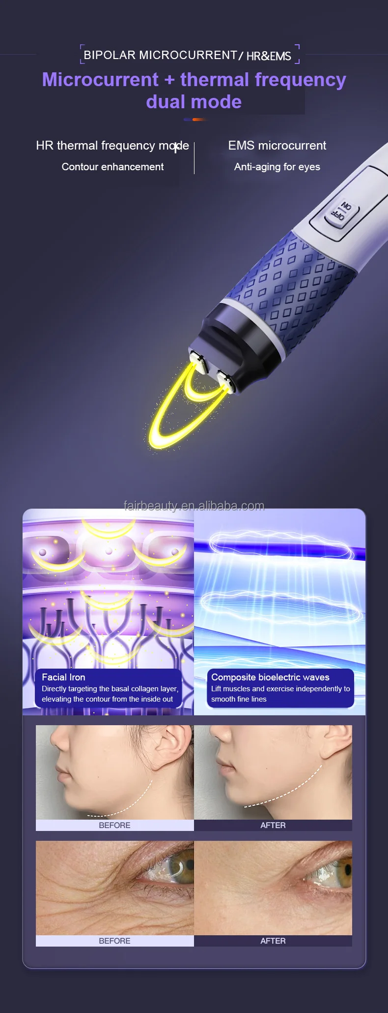 Dual-mode thermal RF + Microcurrent for elite non-surgical face lifts. Bipolar technology targets fine lines and sculpts the jawline by stimulating collagen synthesis.