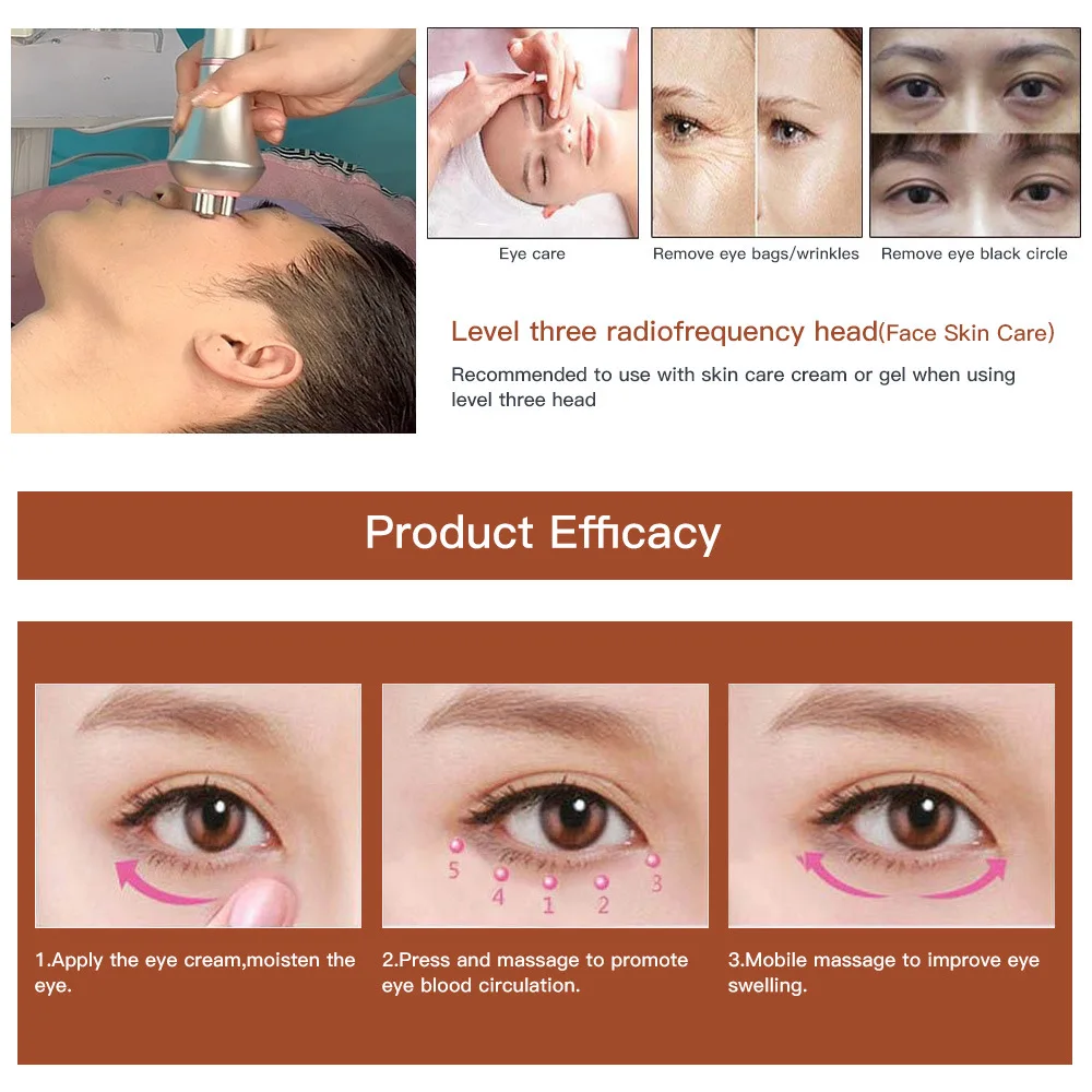 Precise Targeted Treatment: Equipped with level 3 R head for facial care and level 6 R head for body care, matching different parts of face, eyes, abdomen, thighs and arms, with adjustable energy to meet personalized beauty needs.