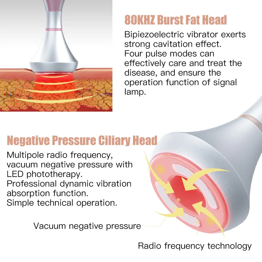 Comprehensive Multi-Technology Synergy: Integrates 80K cavi , bipolar plus multipole R , vacuum negative pressure, 658nm lipo and LED phototherapy, which can dissolve fat cells, stimulate collagen regeneration, and realize all-round body slimming and skin anti-aging effects in one device.