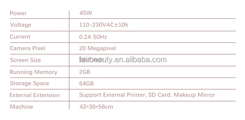 | Imaging Tech | Multi-Spectral Optical Skin Analysis | Operating Voltage | 110V/220V 50-60Hz |